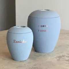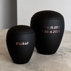 Если вы решили нанести на выбранную урну имя, а также дату рождения и дату смерти животного, у вас есть возможность выбрать один из следующих вариантов. В нашем ассортименте представлены базовые самоклеящиеся наклейки, которые входят в стоимость урны, специальные вырезанные самоклеящиеся буквы золотого или серебряного цвета и, наконец, имя, составленное из камней Swarovski.